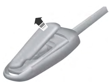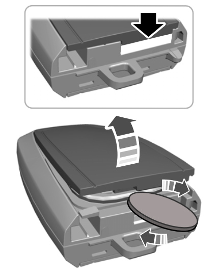 Step 1 – Press the button to release the key. Insert a suitable tool, such as a screwdriver, in the position shown and gently push the clip. Press the clip down to release the battery cover.